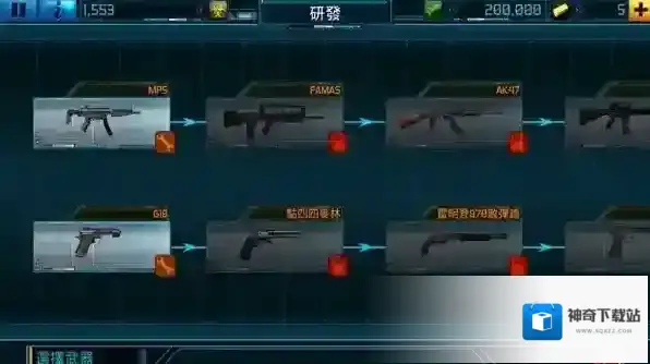 在执行任务的过程中我们有一定的几率可以捡到科技点以及金钱。金钱是用来购买直升机、队员以及武器的。升级武器就需要使用到科技点了。当现在的武器升级满之后,你就可以解锁下一把武器了。当然玩家也可以使用金钱购买装备包裹以及其他型号的直升机还有超级战士。