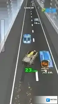 2、长按加速,超车蓝色车辆(如LVL1车),触发升级(+1LVL),解锁“OVERTAKE”技能。
