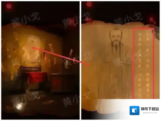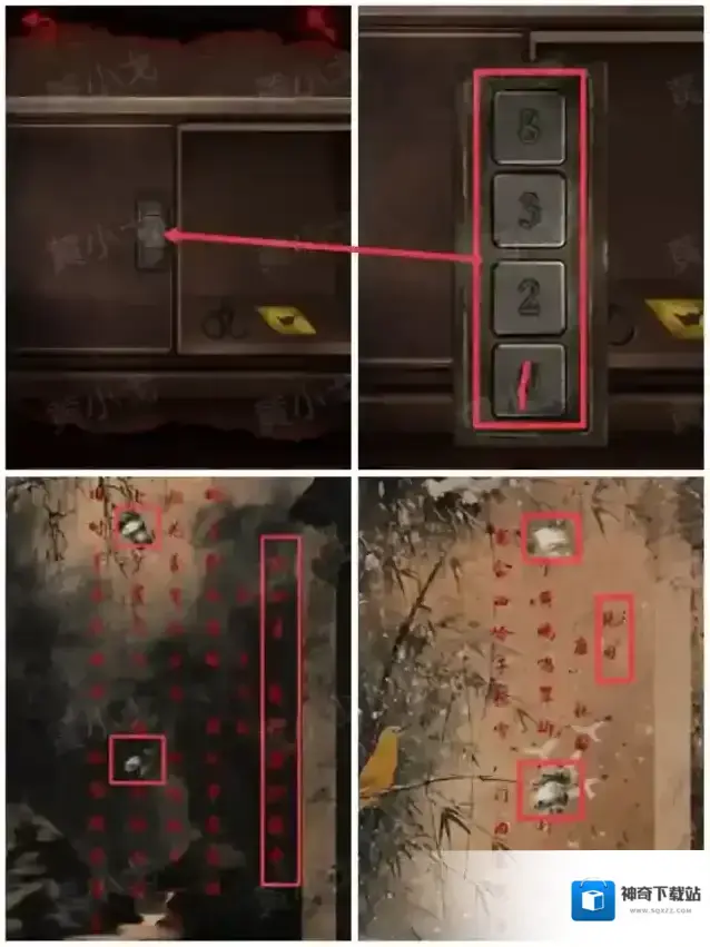 17.点击柜子左侧柜门上的密码锁,根据两幅画上的线索,输入密码:8321