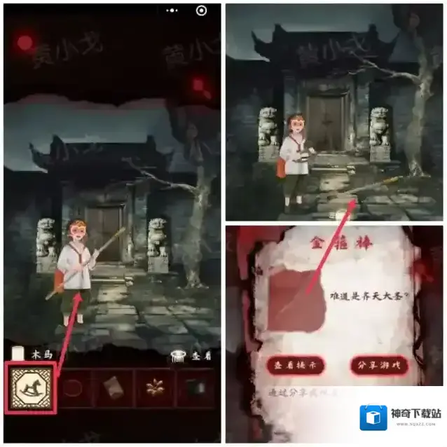6.拿木马给小男孩,拾取掉落的金箍棒