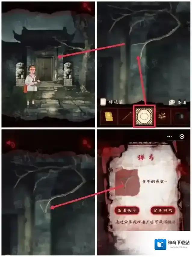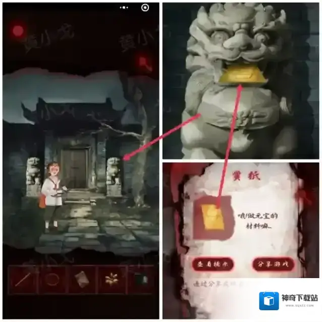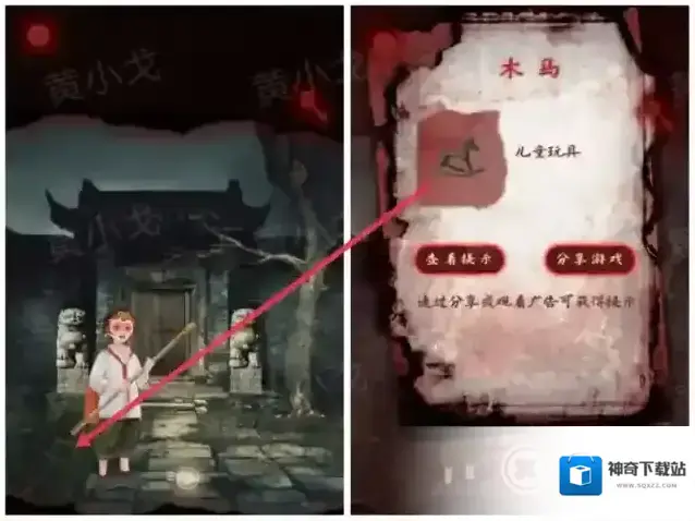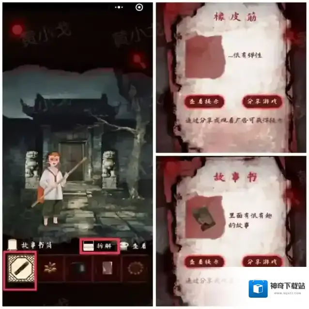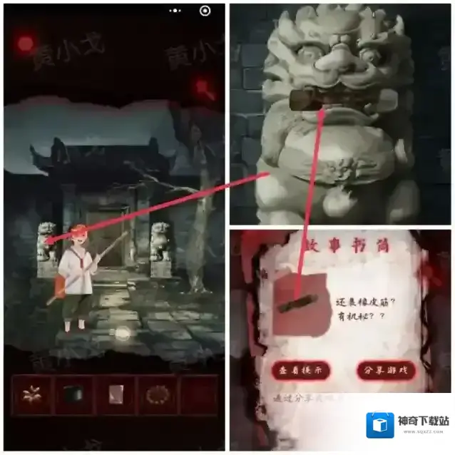第一章 | 第二章上 第二章:槐水村[岔路口]1.点击汽车,插入车钥匙,打开车灯 2.点击车前灯,贴上符咒风筝 [村长家门口]3.点击左侧石狮子,获得故事书筒 4.拆解故事书筒,获得橡皮筋和故事书 5.拾取左侧草丛中的木马 6.拿木马给小男孩,拾取掉...2025-08-27 -