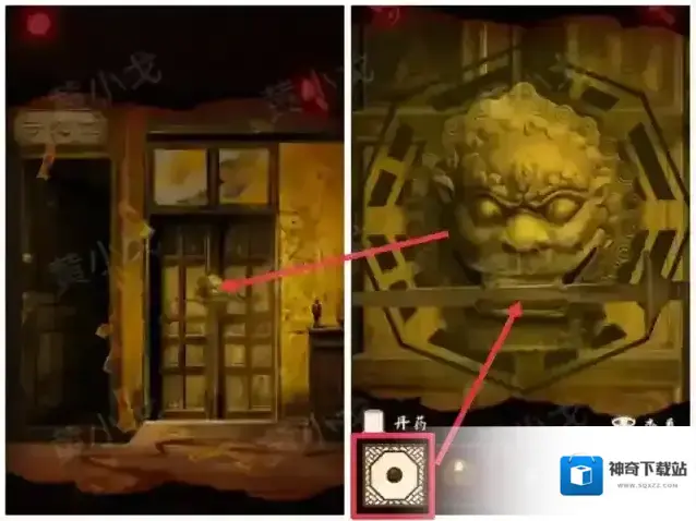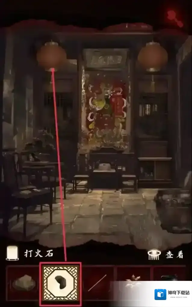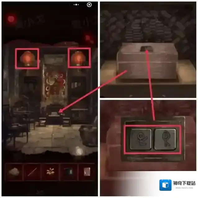 20.点击椅子上的盒子,根据两个灯笼上的图案,调整密码锁上的按钮至对应的图案