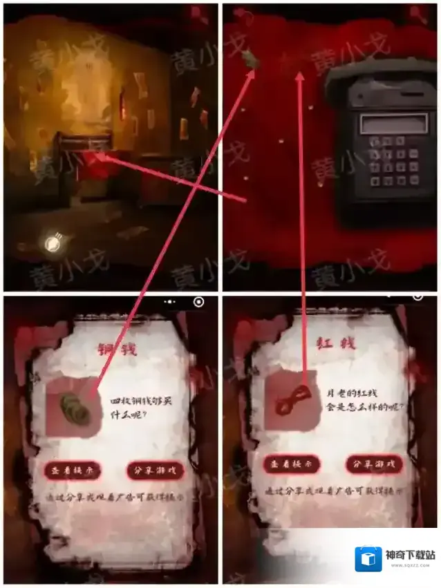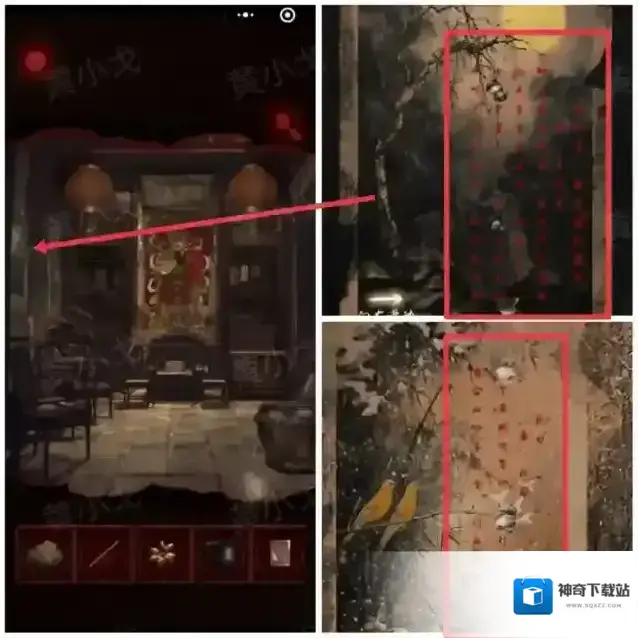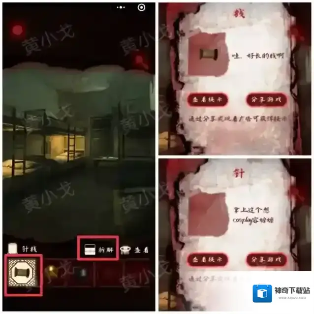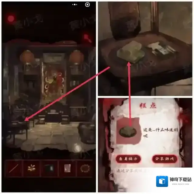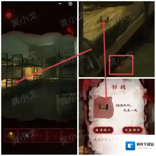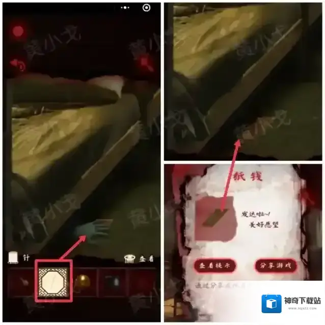 4.点击左侧靠后的床铺,获得针线;点击地上的纸钱,出现纸手