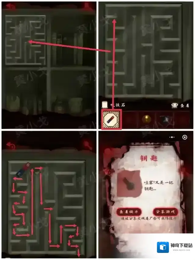 9.点击柜子上的迷宫机关,使用吸铁石,走迷宫,把钥匙吸出来