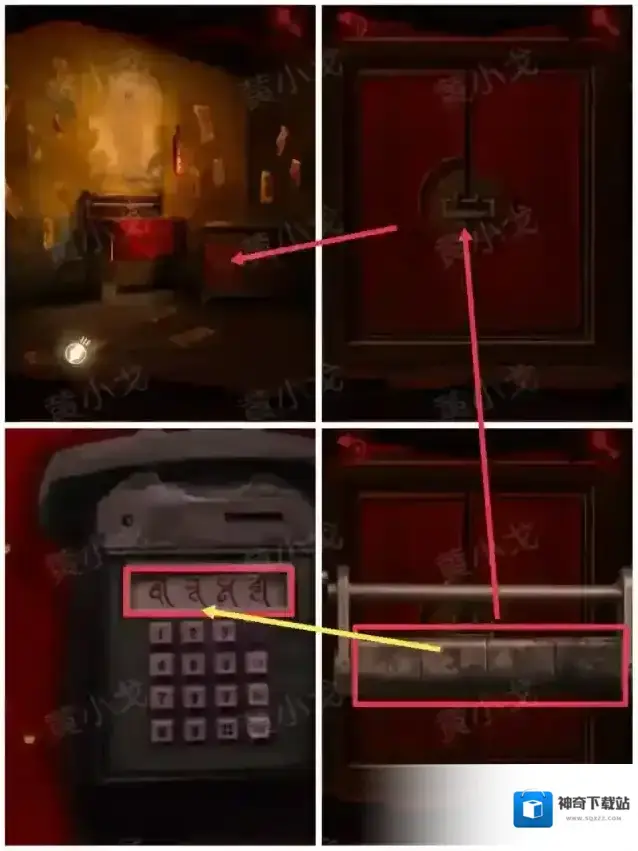 19.点击柜子上的密码锁,根据电话机上的符号,调整密码锁