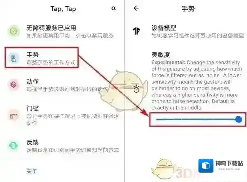 7、点击手势,可以调整双击背部的方式和灵敏度,如下图所示: