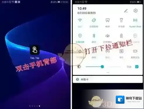 8、设置完成后就可以使用了。按照我之前的设置,当我双击手机背部时就会打开下拉通知栏,如下图所示: