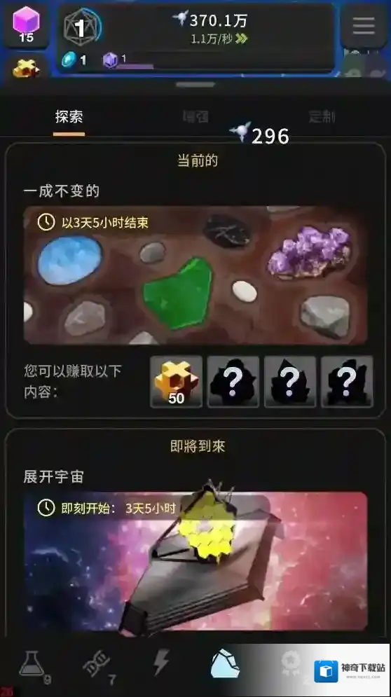 2、点击右下角的按钮可以进入进化界面,在进化界面消耗一定数量的熵可以获得不同的进化效果。