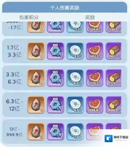 个人伤害奖励要求大致每档翻倍,但奖励的成长幅度远低于所需达成的伤害积分,因此,在达成目标奖励后,可以根据自己的期望值礼让给其他盟友,加入高战玩家发起的集结。
