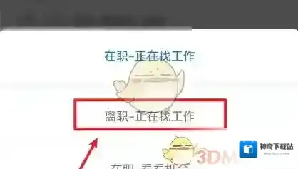 4、在弹出的对话框中,点击选择离职-正在找工作即可完成设置。