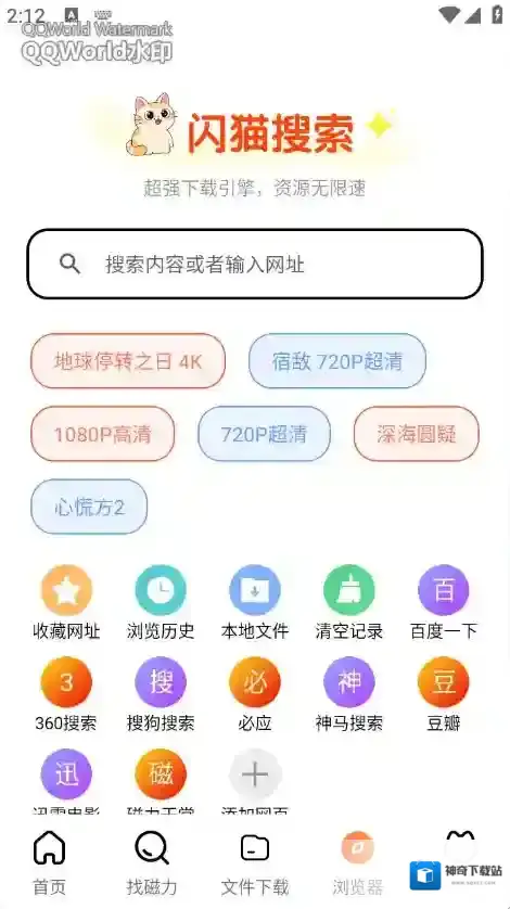 闪猫快下,免费下载各种资源,不管是下载视频、文件以及图片等都是刻意的,支持多种格式,还可以使用内置浏览器进行使用,下载速度快,软件中有强大的磁力搜索和下载引擎,快速下载需要的资源。