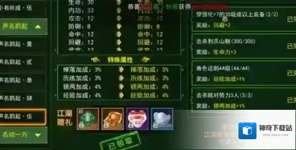 赋予玩法允许玩家为装备添加额外属性,如武功攻击力、命中率、闪避率等,使装备性能更加全面和强大。