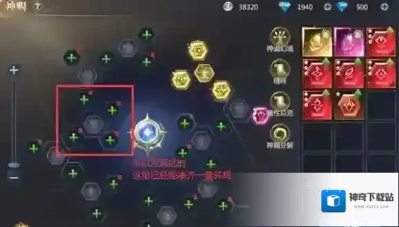 (5)手动在同一圈上的孔位穿戴神赐装备,可以激活共鸣。