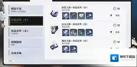 4、武器素材,用于升级武器,同样需要消耗体力刷拟造花萼来获取,此外,突破等级所需的怪物材料部分可以通过打怪掉落,但也有一部分需要刷拟造花萼。